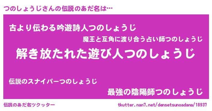 | 男性向けラノベタイトル風あだ名 | 『冴えないつのしょうじの育てかた』 |