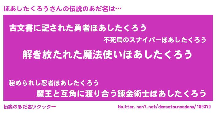 | 料理風あだ名 | 『ほあしたくろうごはん』 |