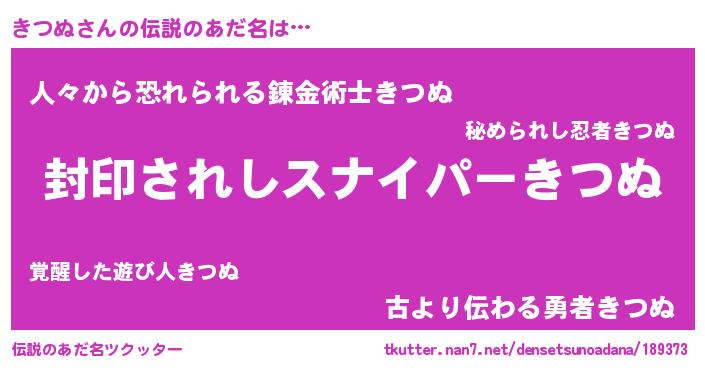 | 女子向けラノベタイトル風あだ名 | 『悪役きつぬに転生したようですが、知った事ではありません』 |