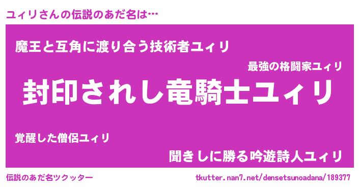 | ポケモン風あだ名 | 『ユィチュウ』『ユィゴンZ』 |