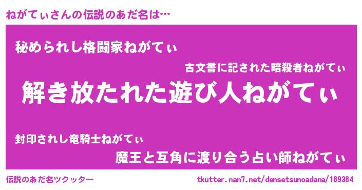 | 意味不明あだ名 | 『とにかく怪しいねがてぃ』 |