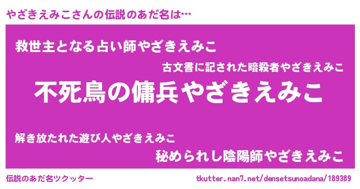 | 女子向けラノベタイトル風あだ名 | 『やざきえみこ姫と円卓の騎士』 |
