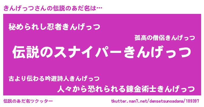 | 胡散臭い通販商品みたいなあだ名 | 『必ず成功する霊験あらたかなお札…その名も「きんげっつ」』 |