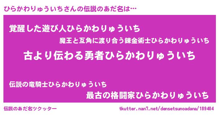| ヘコむあだ名 | 『ひらかわりゅういち(苦笑)』『ひらっちょ』 |
