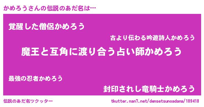 | ヒーロー風カッコイイあだ名 | 『愛の使者かめろう』『究極戦士カメロウ』 |