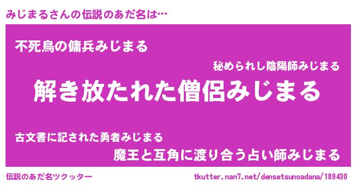 | 意味不明あだ名 | 『住所不定無職みじまる(41歳)』 |
