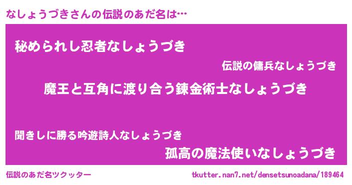 | ヒーロー風カッコイイあだ名 | 『愛の使者なしょうづき』『魔戒騎士ナシ』 |