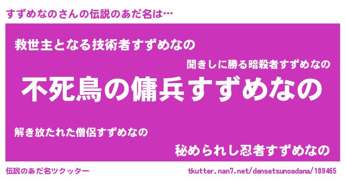 | ポケモン風あだ名 | 『スーズイ』『スズチュウ』 |