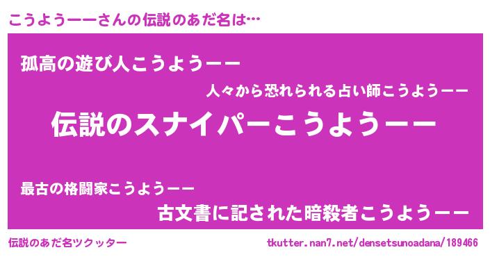 | 意味不明あだ名 | 『住所不定無職こうようーー(81歳)』 |