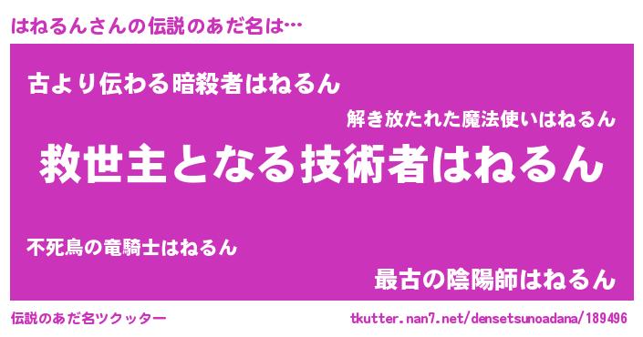 | ヒーロー風カッコイイあだ名 | 『天空の使者はねるん』『ネオハネルン』 |