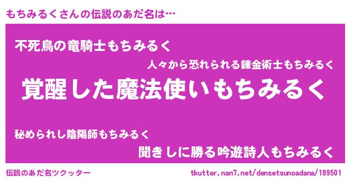| 意味不明あだ名 | 『とにかく怪しいもちみるく』 |