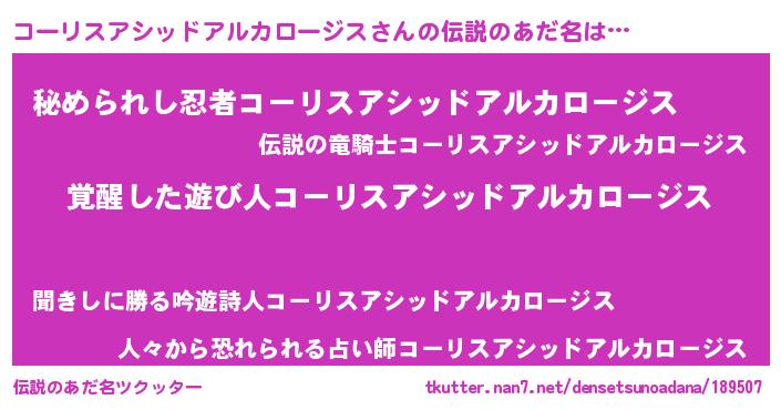 | 欧米人風あだ名 | 『ウサインコーリスアシッドアルカロージス』 |