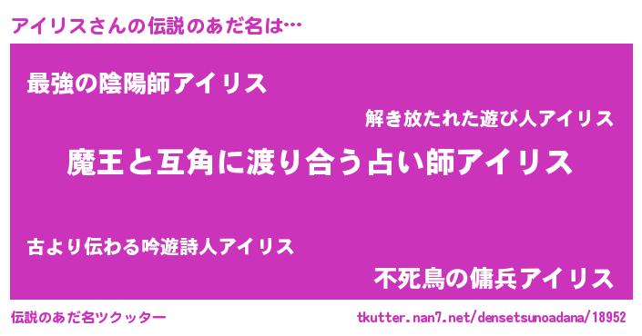 | 女子向けラノベタイトル風あだ名 | 『アイリスアンティーク』 |