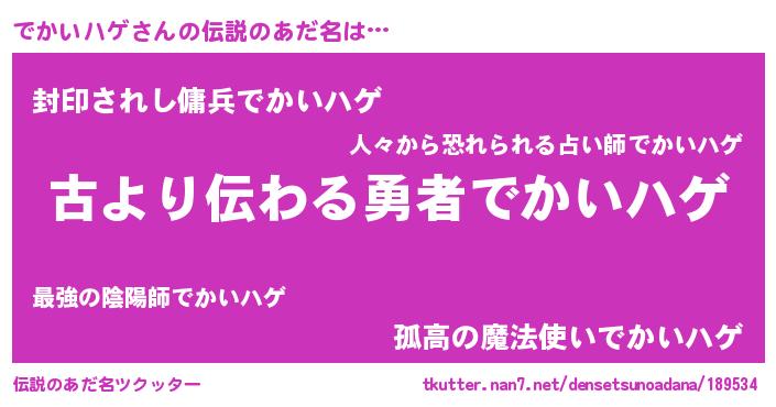 | ヒーロー風カッコイイあだ名 | 『ネオデカイハゲ』『スーパーデカイハゲ』 |