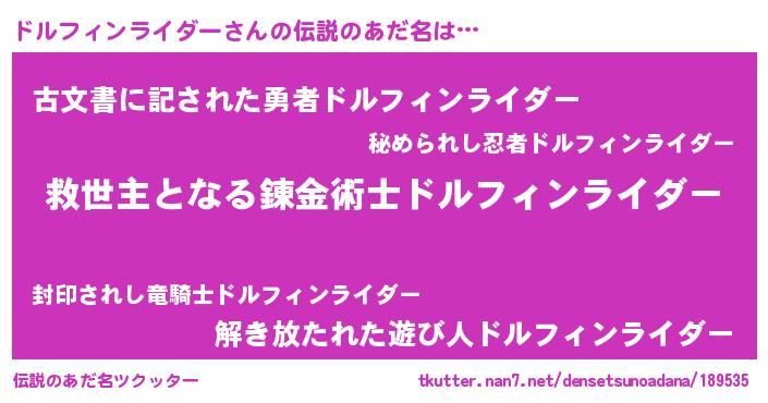 | 胡散臭い通販商品みたいなあだ名 | 『あなたにだけ特別に提供する世界で10本だけ現存している希少なブランデー…その名も「ドルフィンライダー」』 |