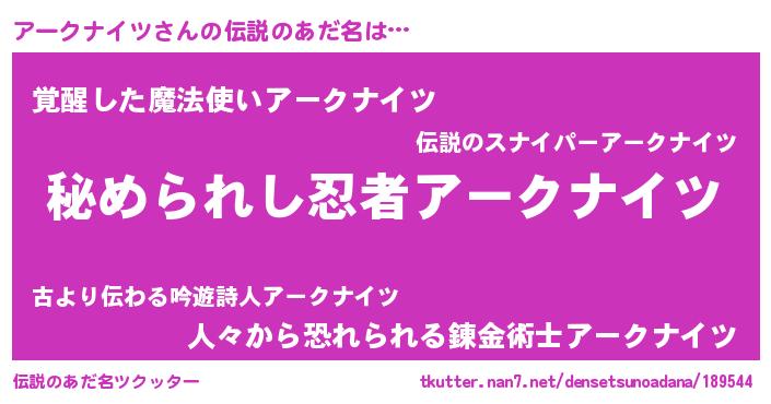 | 恥ずかしいあだ名 | 『アークナイツデラックス』『アーっちょ』 |