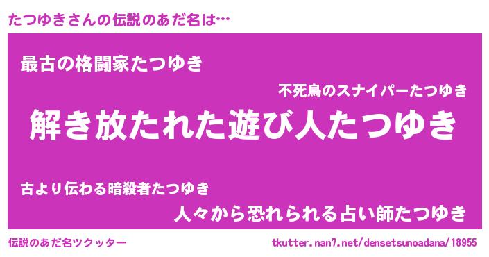 | 意味不明あだ名 | 『住所不定無職たつゆき(85歳)』 |
