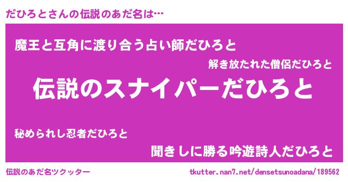 | ヒーロー風カッコイイあだ名 | 『スーパーダヒロト』『仮面ダヒダー』 |