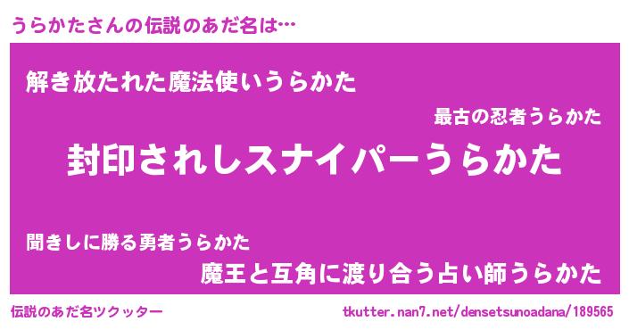 | 意味不明あだ名 | 『ペロリンうらかた』『自称うらかた』 |