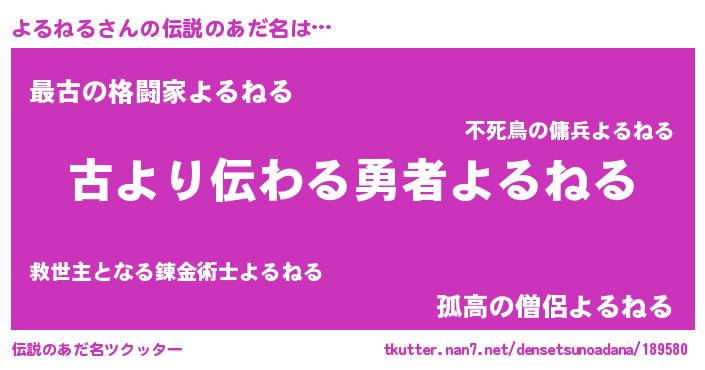 | ヒーロー風カッコイイあだ名 | 『仮面ヨルダー』『最強戦士ヨルネル』 |