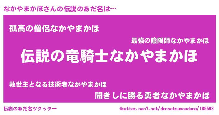 | 男性向けラノベタイトル風あだ名 | 『ナカヤマカホスレイヤー』 |