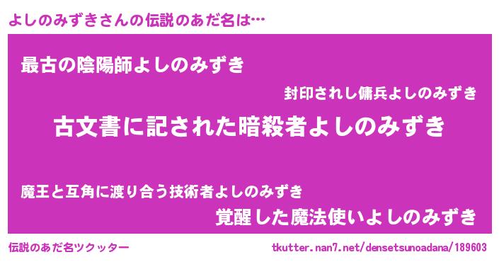 | ポケモン風あだ名 | 『ゼニヨシ』『ヨシノダネ』 |