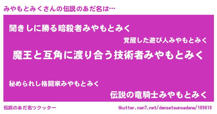 | ヘコむあだ名 | 『みやもとみく(笑)』『みやにゅー』 |