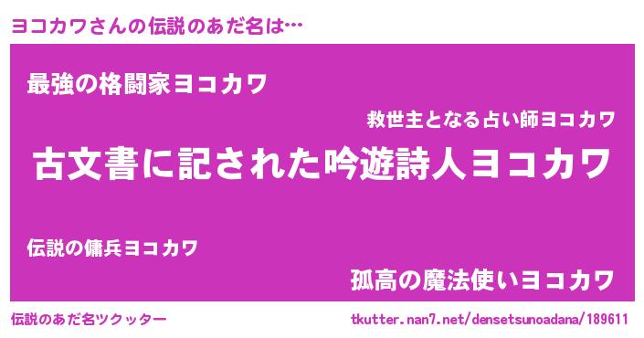 | ヒーロー風カッコイイあだ名 | 『ネオヨコカワ』『ウルトラヨコカワマン』 |