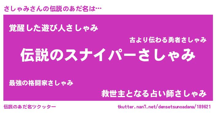 | ヒーロー風カッコイイあだ名 | 『仮面サシダー』『スーパーサシャミ』 |