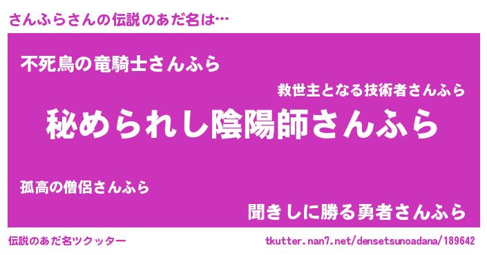 | 意味不明あだ名 | 『さんふらフォーエバー』『自称さんふら』 |