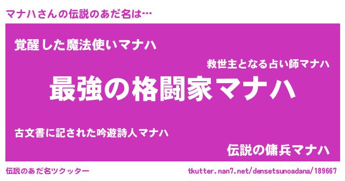 | ヒーロー風カッコイイあだ名 | 『ウルトラマナハマン』『仮面マナダー』 |