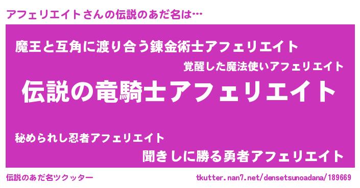 | ファンタジー風あだ名 | 『アフフェル』『ヴァルアフーナ』 |