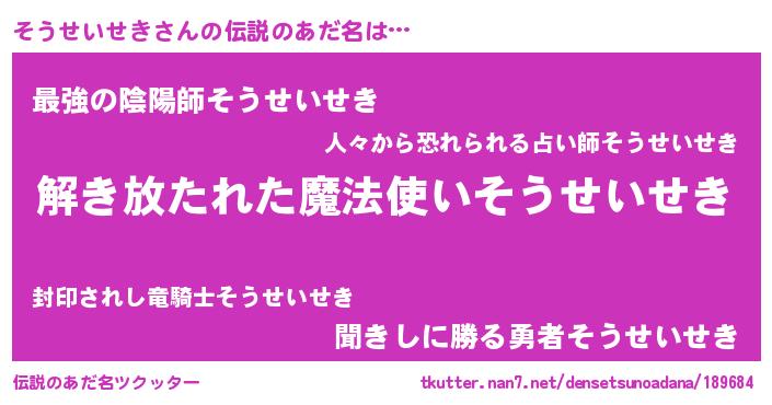| 胡散臭い通販商品みたいなあだ名 | 『伝統あるサプリメント…その名も「そうせいせき」』 |