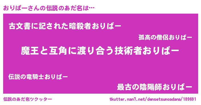 | ヒーロー風カッコイイあだ名 | 『友情の使者おりばー』『仮面オリダー』 |