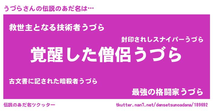 | 女子向けラノベタイトル風あだ名 | 『うづら様がみてる』『死神うづらの再婚』 |