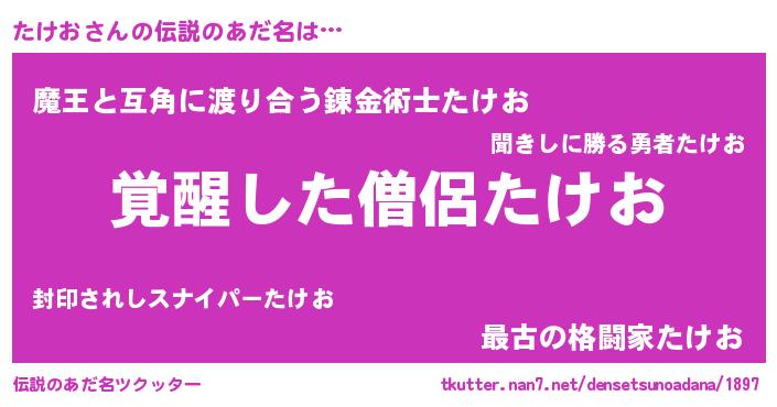 | ヒーロー風カッコイイあだ名 | 『炎刃騎士タケ』『友情の使者たけお』 |