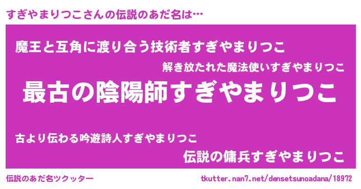 | 意味不明あだ名 | 『自称すぎやまりつこ』 |