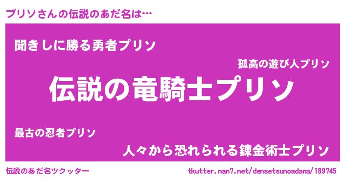 | 意味不明あだ名 | 『住所不定無職プリソ(2歳)』 |