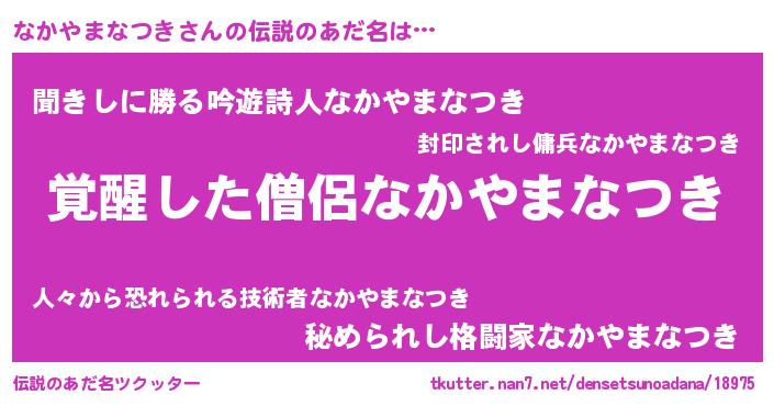 | 男性向けラノベタイトル風あだ名 | 『なかやまなつきの嫁は女の子じゃないと思った?』 |