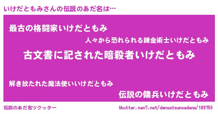 | 胡散臭い通販商品みたいなあだ名 | 『前代未聞の健康食品…その名も「いけだともみ」』 |
