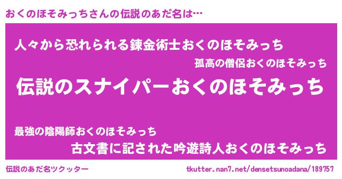 | 胡散臭い通販商品みたいなあだ名 | 『必ず成功する霊験あらたかなお札…その名も「おくのほそみっち」』 |