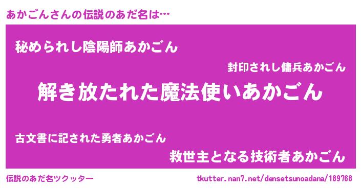 | 胡散臭い通販商品みたいなあだ名 | 『世界中を虜にした100年もののヴィンテージワイン…その名も「あかごん」』 |