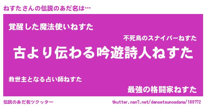 | 欧米人風あだ名 | 『ダルビッシュねすた』『ウサインねすた』 |