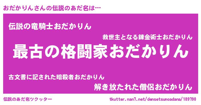 | ヒーロー風カッコイイあだ名 | 『ウルトラ戦士オダカリン』 |