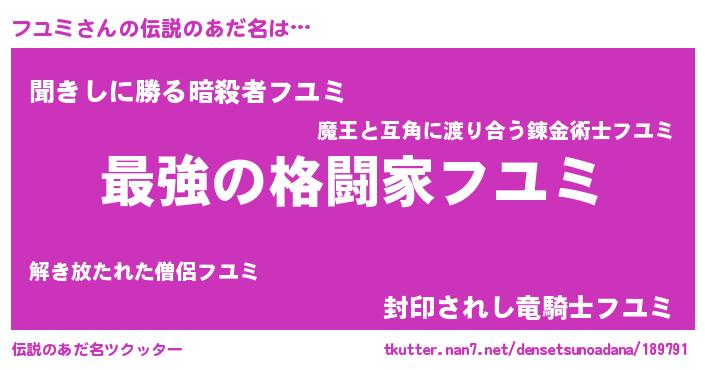 | 意味不明あだ名 | 『自称フユミ』『フユミフォーエバー』 |