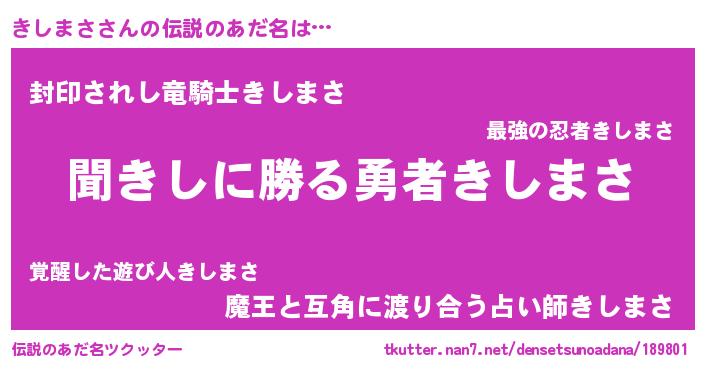 | 胡散臭い通販商品みたいなあだ名 | 『絶対に幸福をもたらす水素水…その名も「きしまさ」』 |