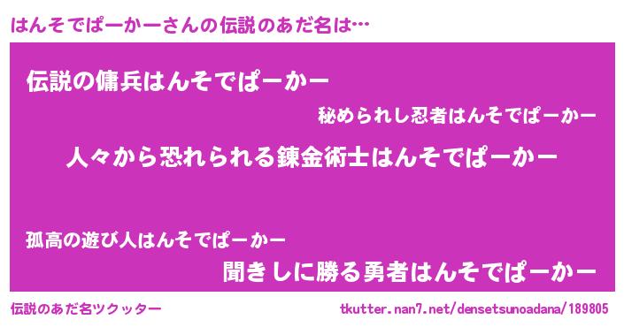 | 男性向けラノベタイトル風あだ名 | 『ハンソデパーカースレイヤー』 |