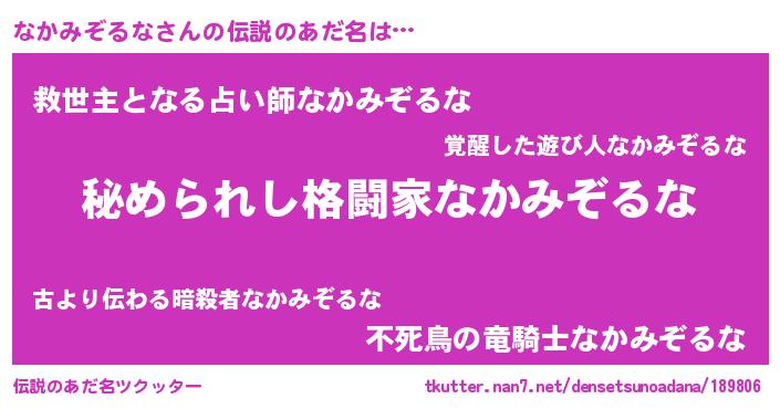 | 意味不明あだ名 | 『自称なかみぞるな』 |