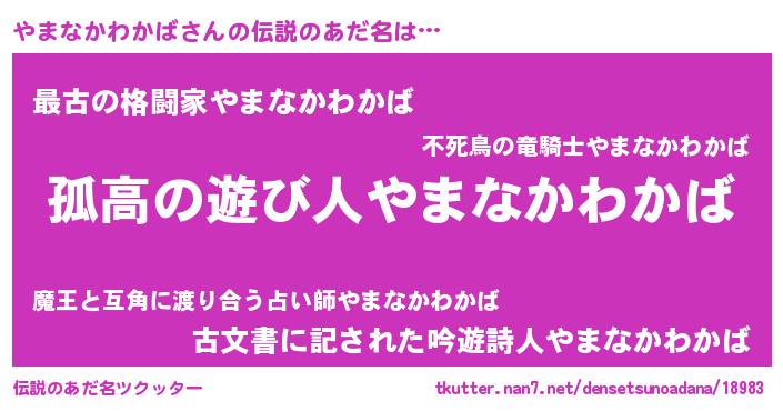 | ヒーロー風カッコイイあだ名 | 『黄金騎士ヤマ』『ネオヤマナカワカバ』 |