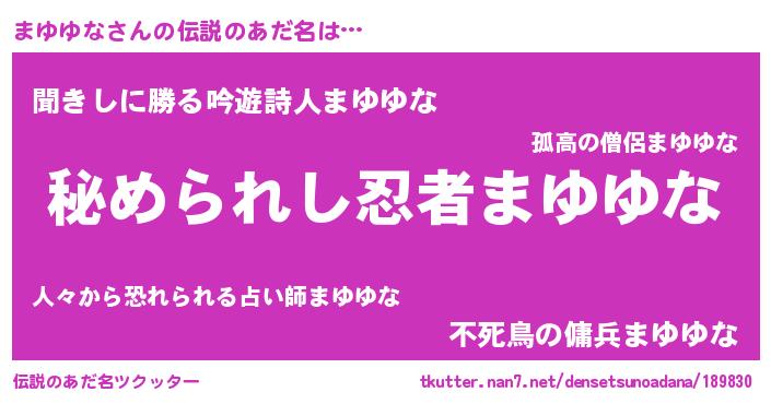 | 女子向けラノベタイトル風あだ名 | 『まゆゆななんてお断りですっ。』 |